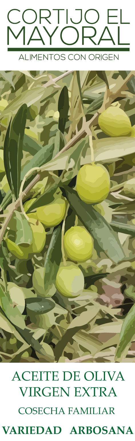 - Cosecha familiar. El principal olivar que tenemos, a los pies del Cortijo El Mayoral. Una plantación de Arbosana que es nuestro orgullo, bajo un manejo integral enfocado en el respeto al medio ambiente y la búsqueda de la máxima calidad organoléptica.